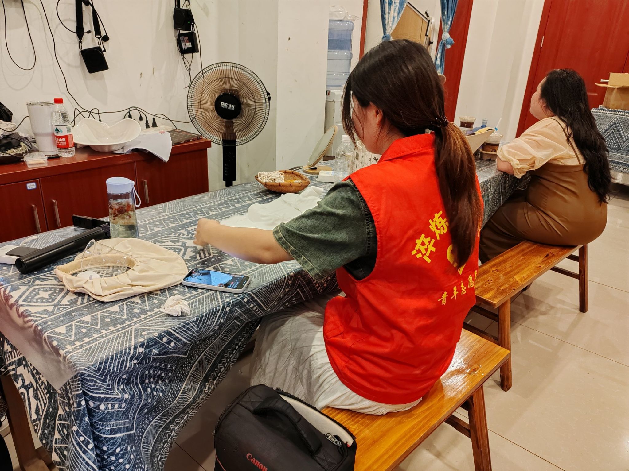 在数字技术重塑传统工艺的当下,实践团走进下司古镇非遗工坊,捕捉银器、漆扇技艺的独特魅力。银器铺内,此起彼伏的敲击声与闪烁的火光交织,匠人以锤为笔、银为纸,在方寸之间勾勒龙纹水浪,将一块块银料锻造成精美的饰品;漆扇工坊里,天然颜料晕染扇面,朱砂的热烈与靛蓝的沉静碰撞出东方美学。团队运用多机位拍摄,用影像为传统技艺留存珍贵档案,让传统技艺突破时空界限,在数字时代绽放光彩。