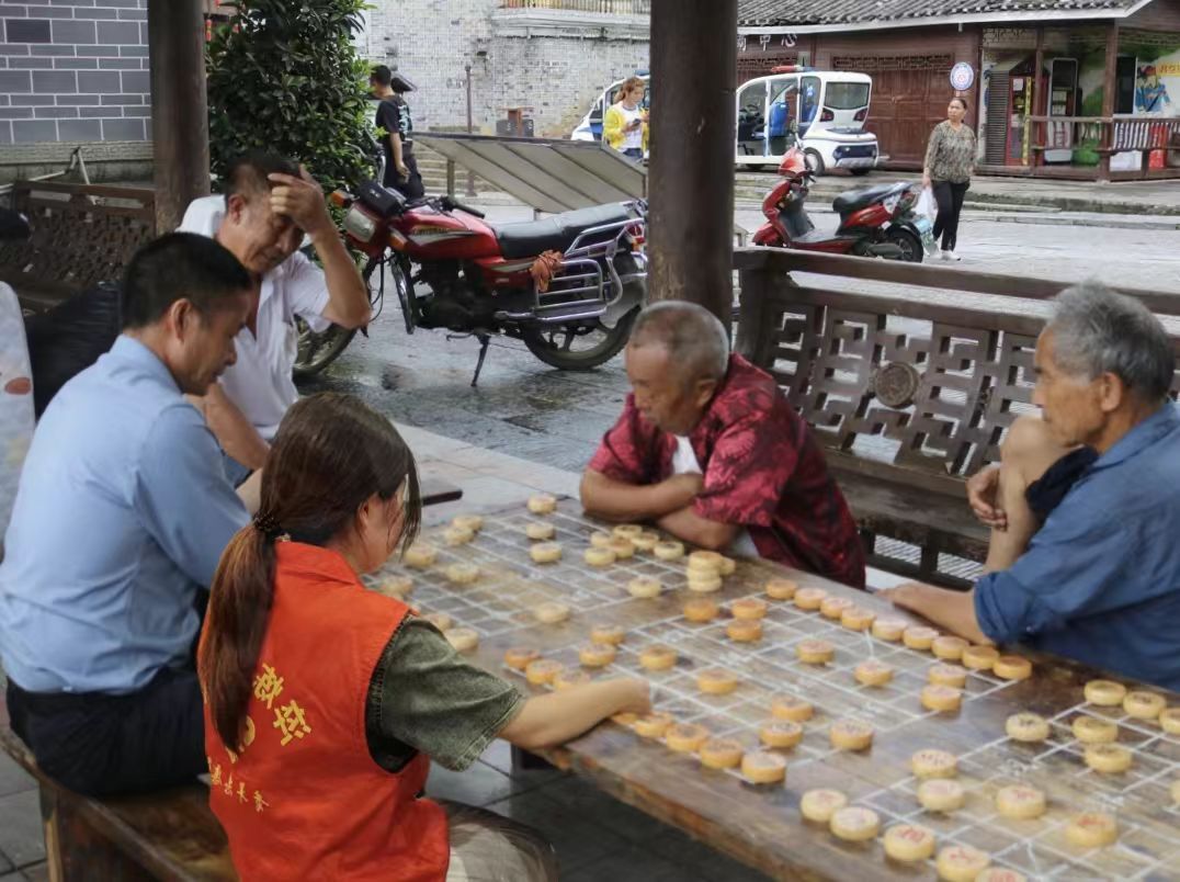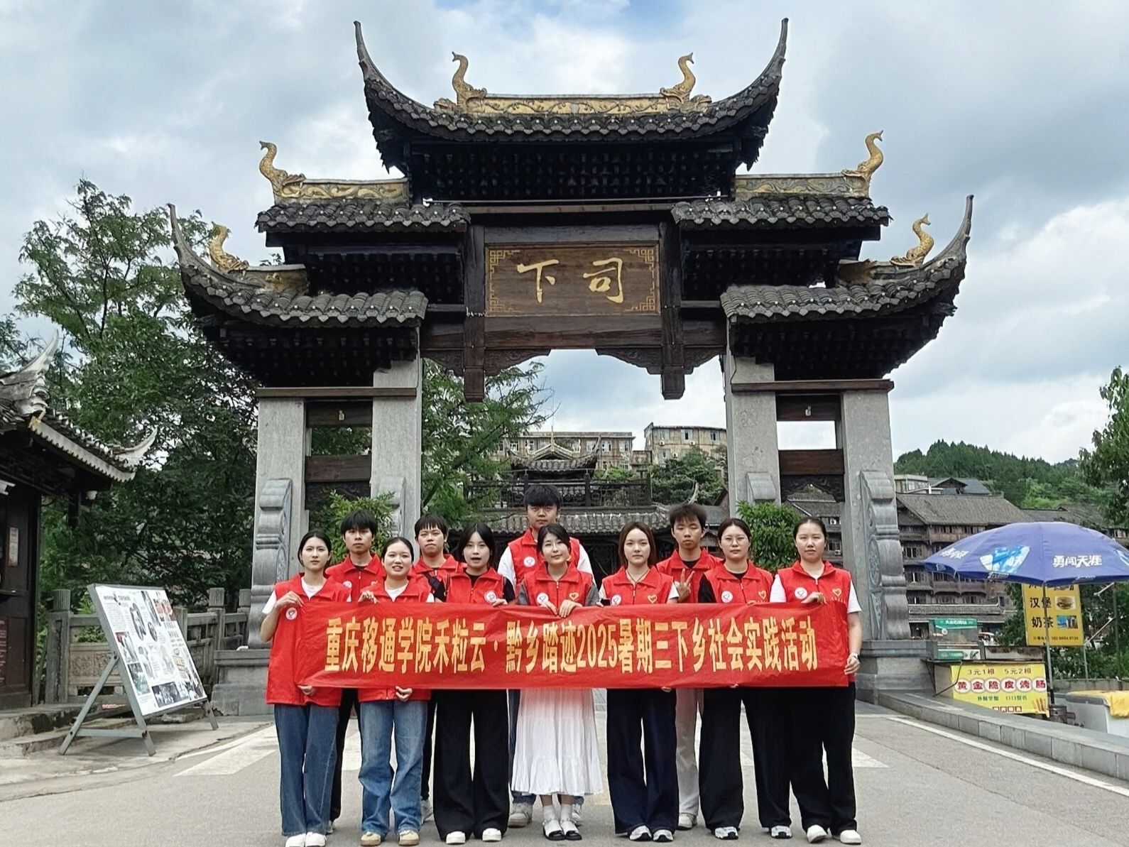 广场转角处,木质凉亭内居民围坐闲谈,实践团成员们也融入其中,倾听着镇中老人讲述着古镇的故事,感受这里宁静的生活节奏。古老的建筑、青石板路,与人们的欢声笑语交织在一起,构成了一幅岁月静好的画面。实践团成员们在这里体会到了下司古镇的独特风情,也感受到了当地居民对生活的热爱和对家乡的眷恋。