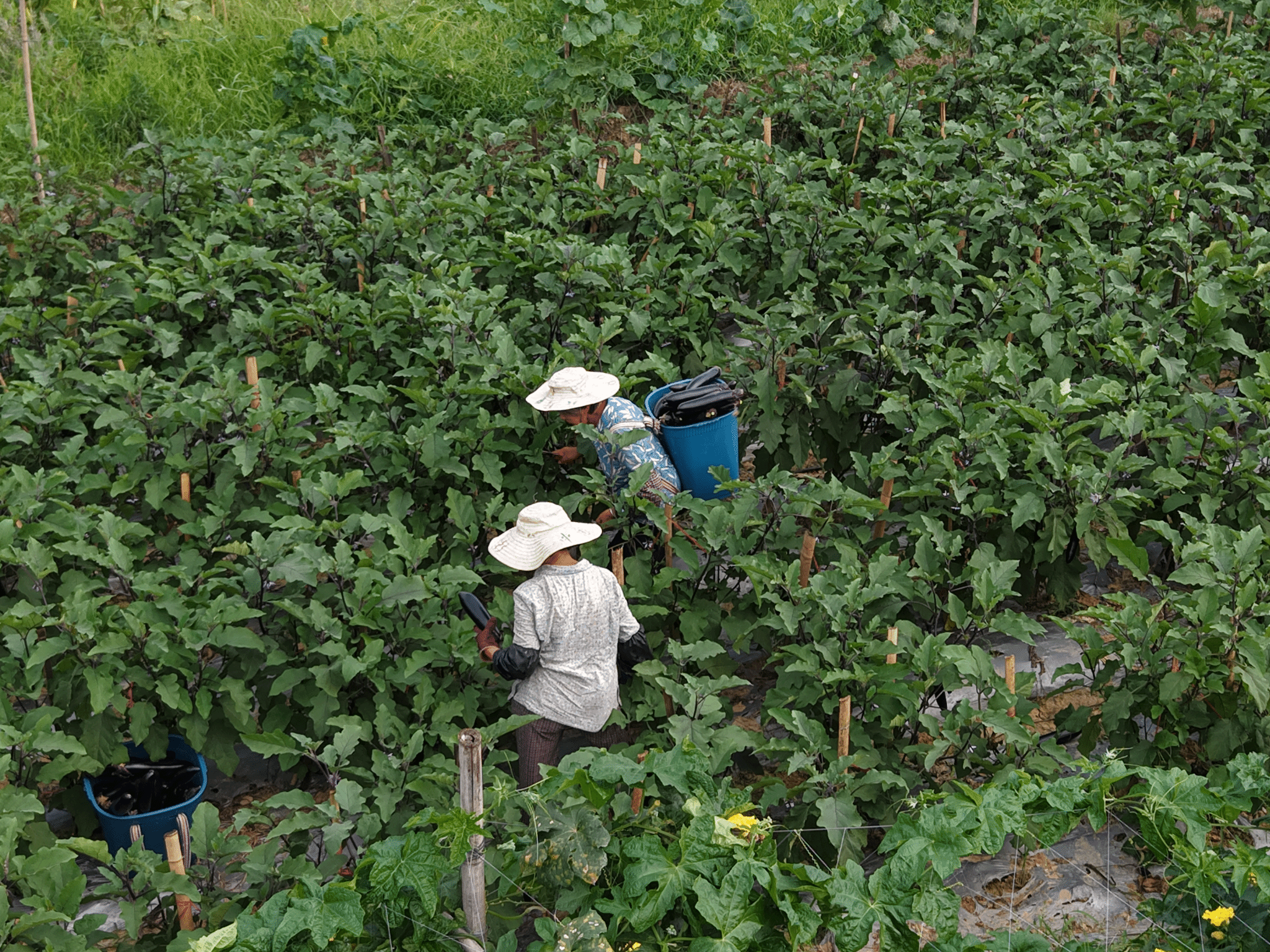 晨露未晞闻农技,青衿已动剪茄枝。细听讲解后,怀揣着热忱的实践团成员执剪入田,在当地村民的指导下进行采摘,剪刀开合的“咔嚓”声与田间笑语交织成歌。这场助农体验,既让实践团成员亲历采摘学问,也在躬身劳作中读懂农耕的精细与辛劳,悄然诉说着劳动的真谛。
