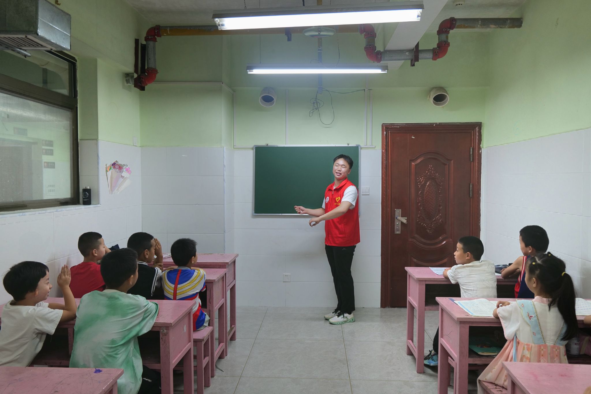 最后,由一名少先队员代表,高举右手带领大家庄严宣誓。“我是环保小卫士,节约水电爱纸张,垃圾分类好习惯,爱护花草和动物,走到哪儿都要记心上。”坚定的童声整齐划一,响彻整个教室。孩子们眼神清澈而认真,这份承诺不仅是对生态理念的传承,更凝聚着青少年儿童守护地球家园的决心与担当。