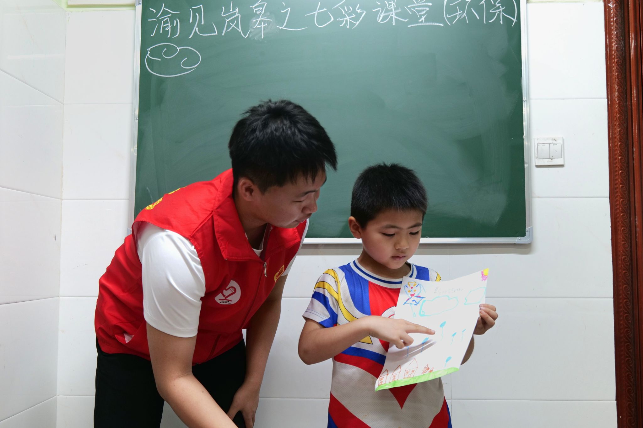 第三堂课的绘画创作环节中,小朋友们充分发挥想象力,用五彩斑斓的画笔,在画纸上勾勒出自己内心的绿色家园。这些充满童真视角的艺术作品,不仅承载着少年儿童对美好生态环境的向往,更折射出他们对生态保护理念的深度思考。在作品展示与分享环节,小朋友们积极主动展示创作成果,通过语言叙述深化对生态理念的理解。