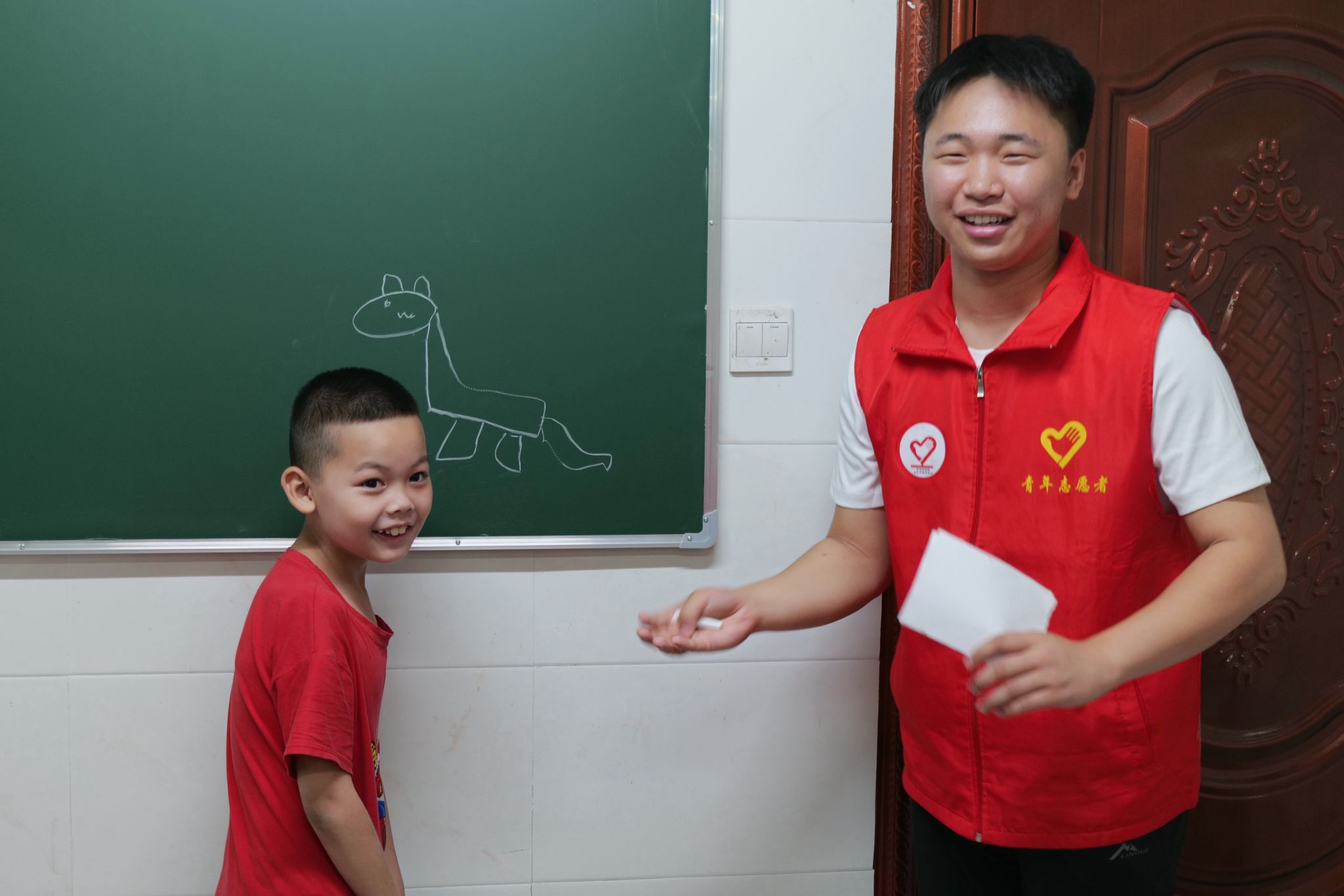 第一堂课,宣讲团成员以一场趣味横生的“你画我猜”游戏作为开场,瞬间拉近了与小朋友们的距离。被选中上台的“小画家”们,根据宣讲团成员给出的词语,在黑板上认真勾勒与创作,台下的小朋友们则积极抢答。该环节不仅达成了破冰目标,更在游戏过程中完成对生态知识的初步建构,为后续教学开展奠定良好基础。
