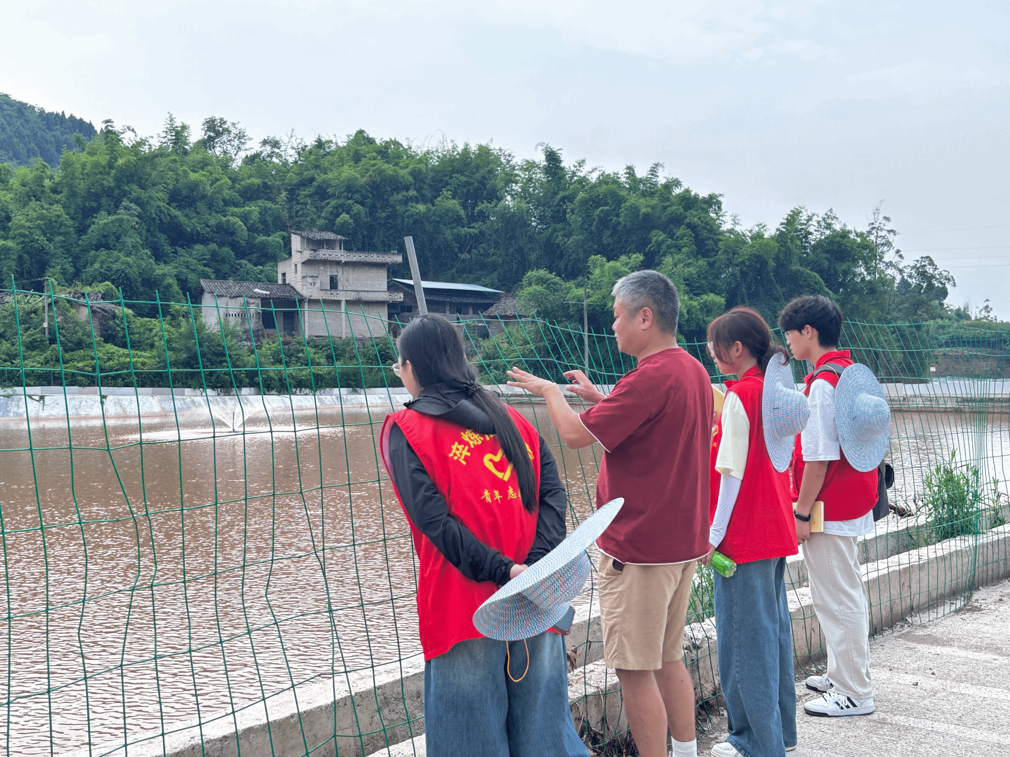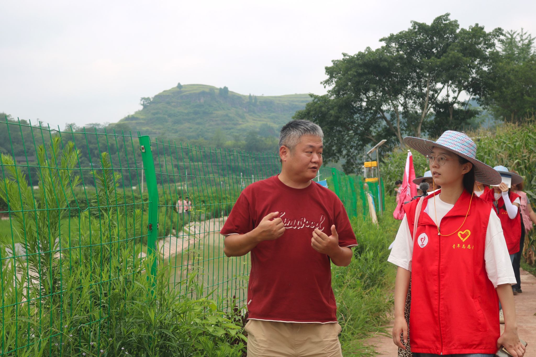 在政府工作人员的带领下,“凤山青穗”乡村振兴促进团成员们抵达生态稻鳖养殖基地,当地负责人为成员们简要介绍:鳖对于水质、气候都有着特定的要求,如无污染的水域、原生态的环境等。同时,成员们通过采访了解到,合川区三庙镇稻鳖生态养殖系统作为重庆市唯一且最大的稻鳖共生养殖基地,对三庙镇的发展具有重大意义。
