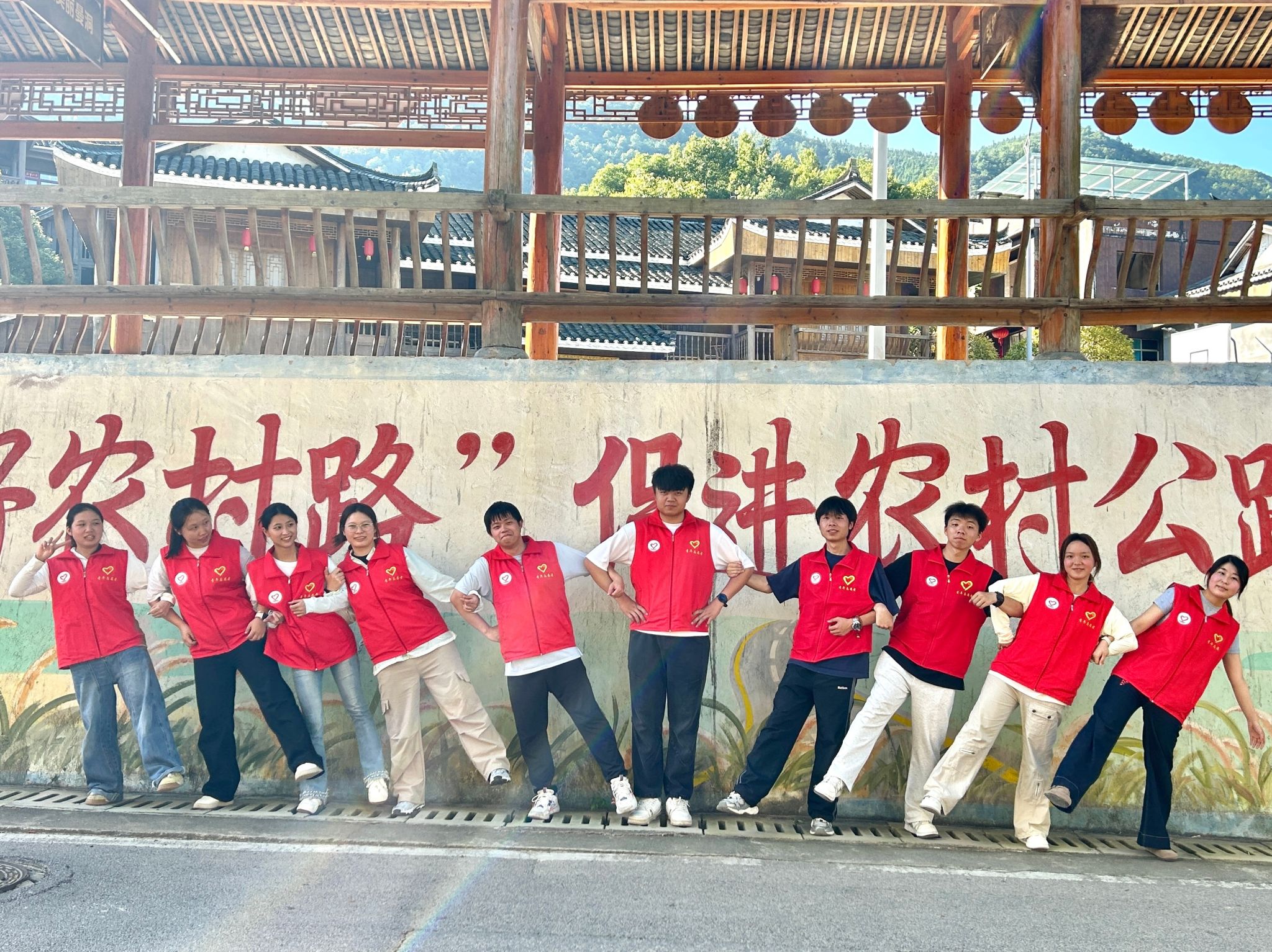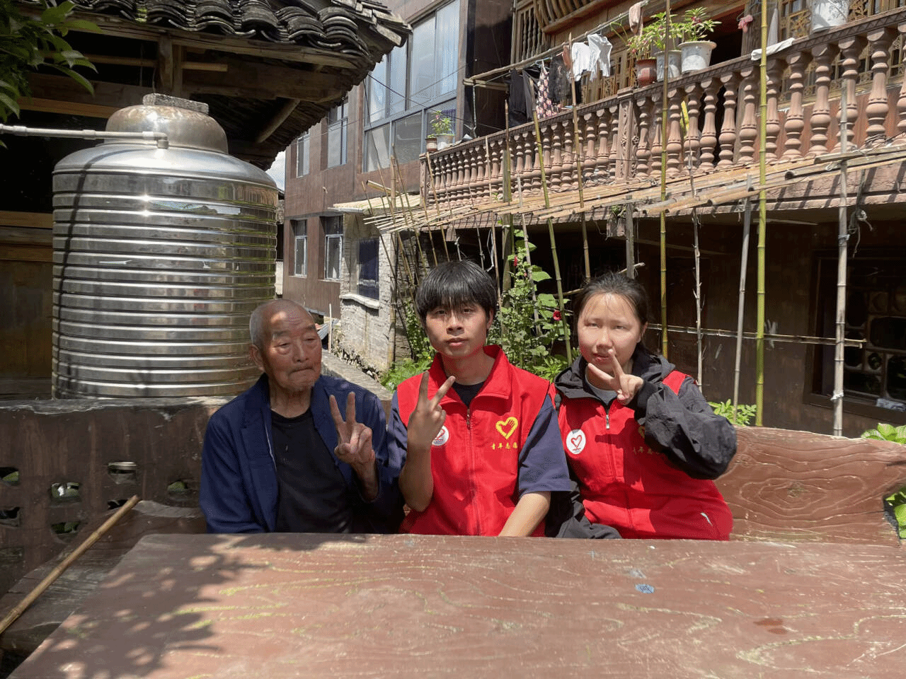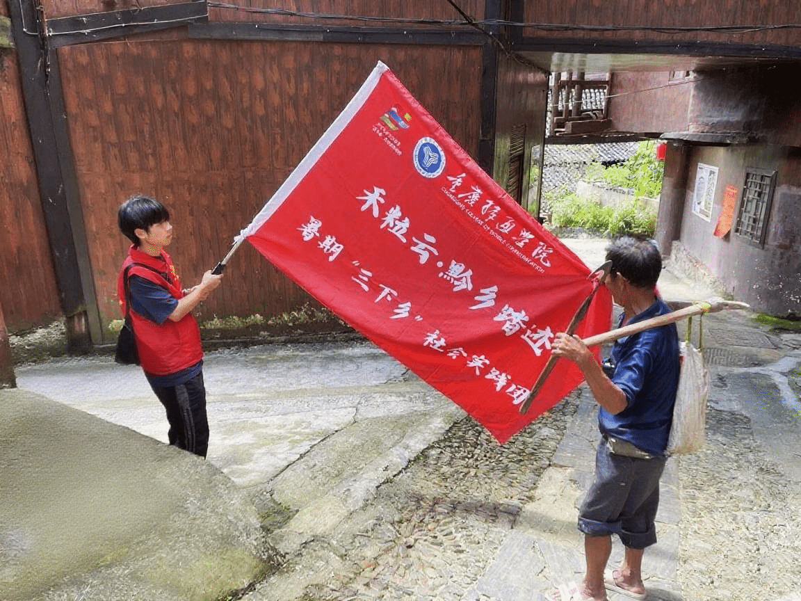走进青曼苗寨,实践团成员们开启了一场人文探索之旅。行进间,成员与手持农具的苗族老人,以实践团旗帜为引,开启一场关于青春实践与乡土生活的交流。随后,大家围坐在木楼旁,听老人讲述着苗寨过往——从先辈拓荒建寨,到传统习俗传承,苗寨历史的厚重与人文风情的温度在话语中流淌。成员们专注聆听,感受苗族对历史的珍视、对生活的热爱,于这场对话里,触摸苗寨人文温度,让民族文化的传承,在青春探访中延续。
