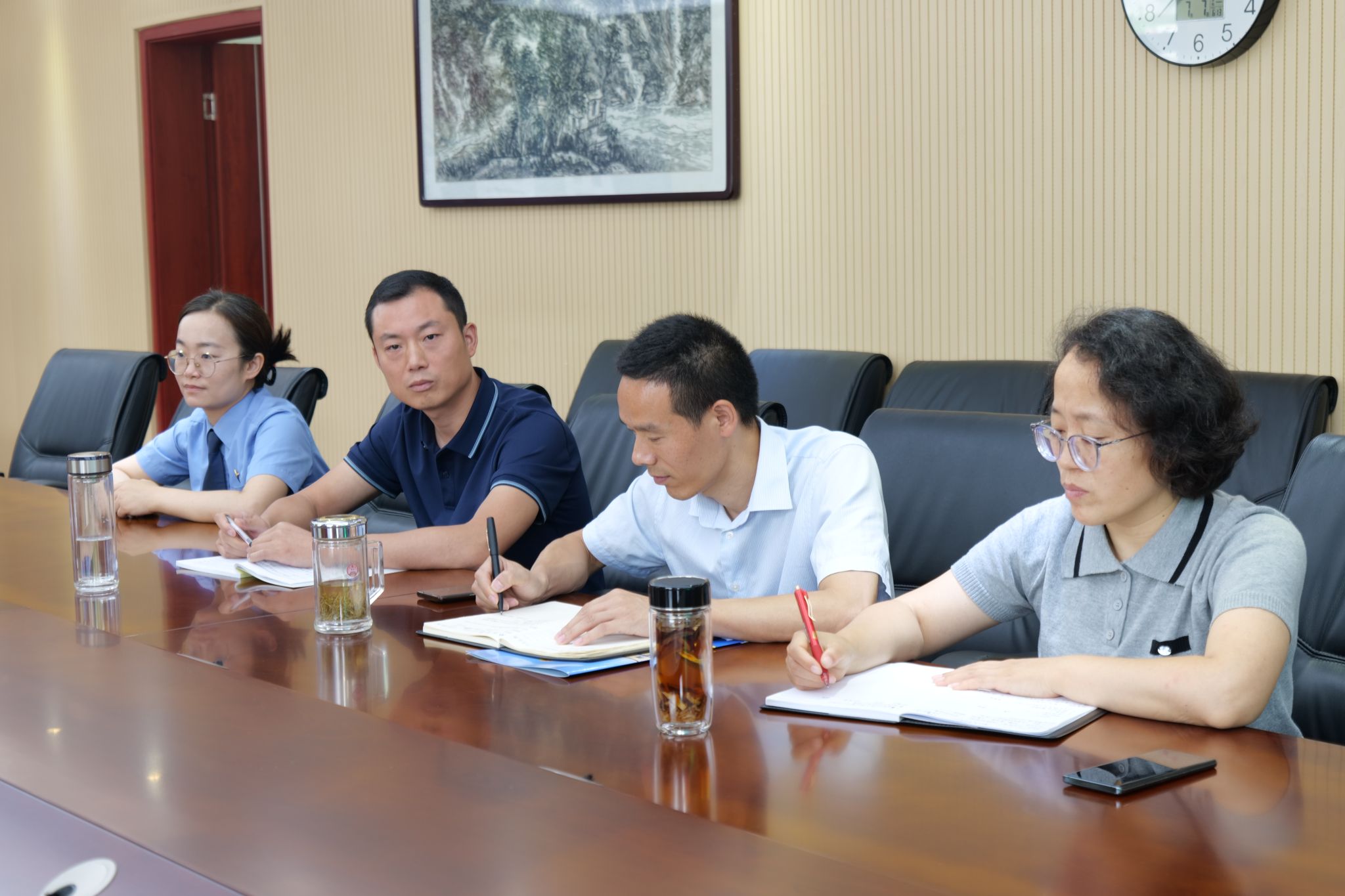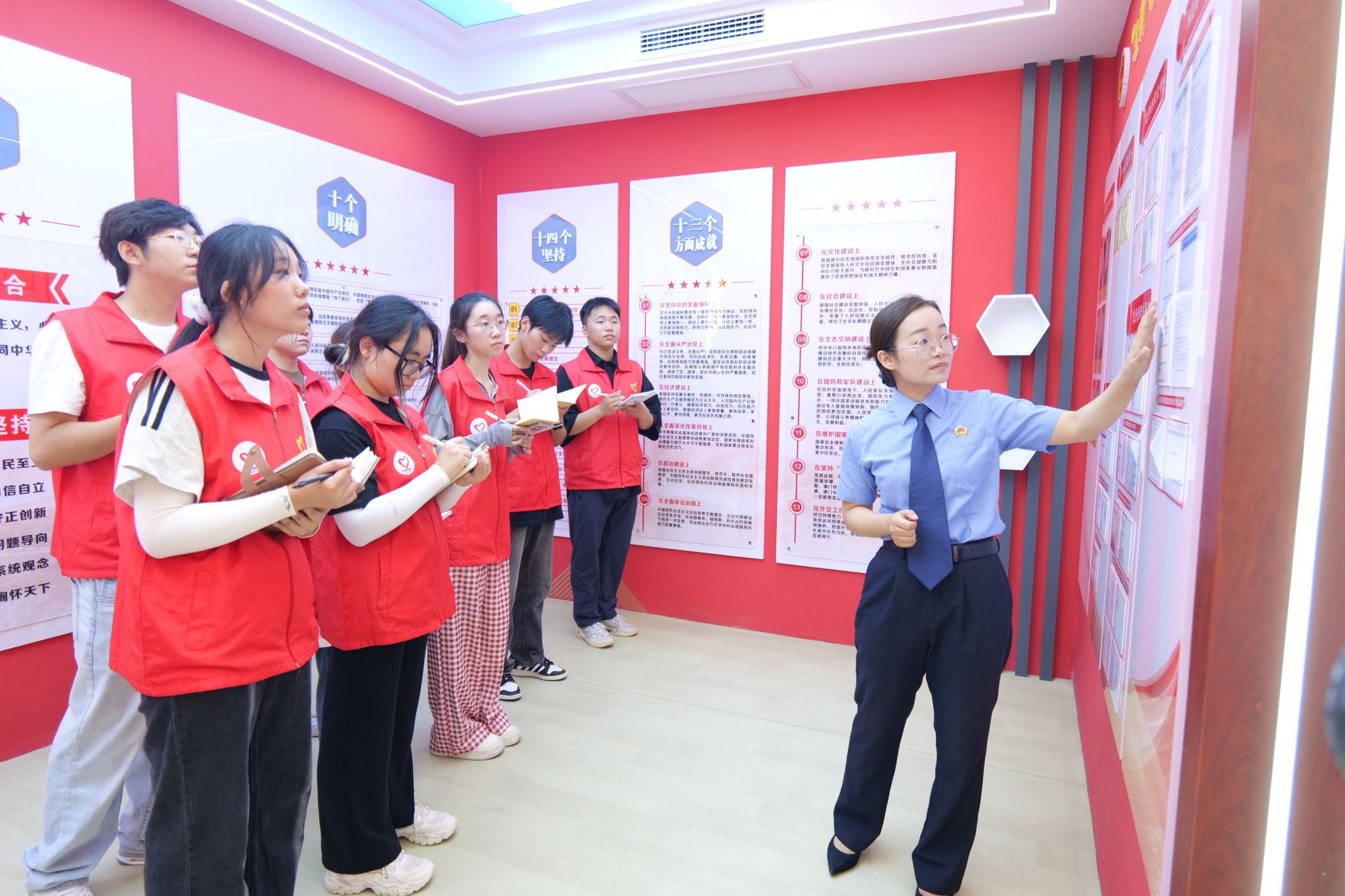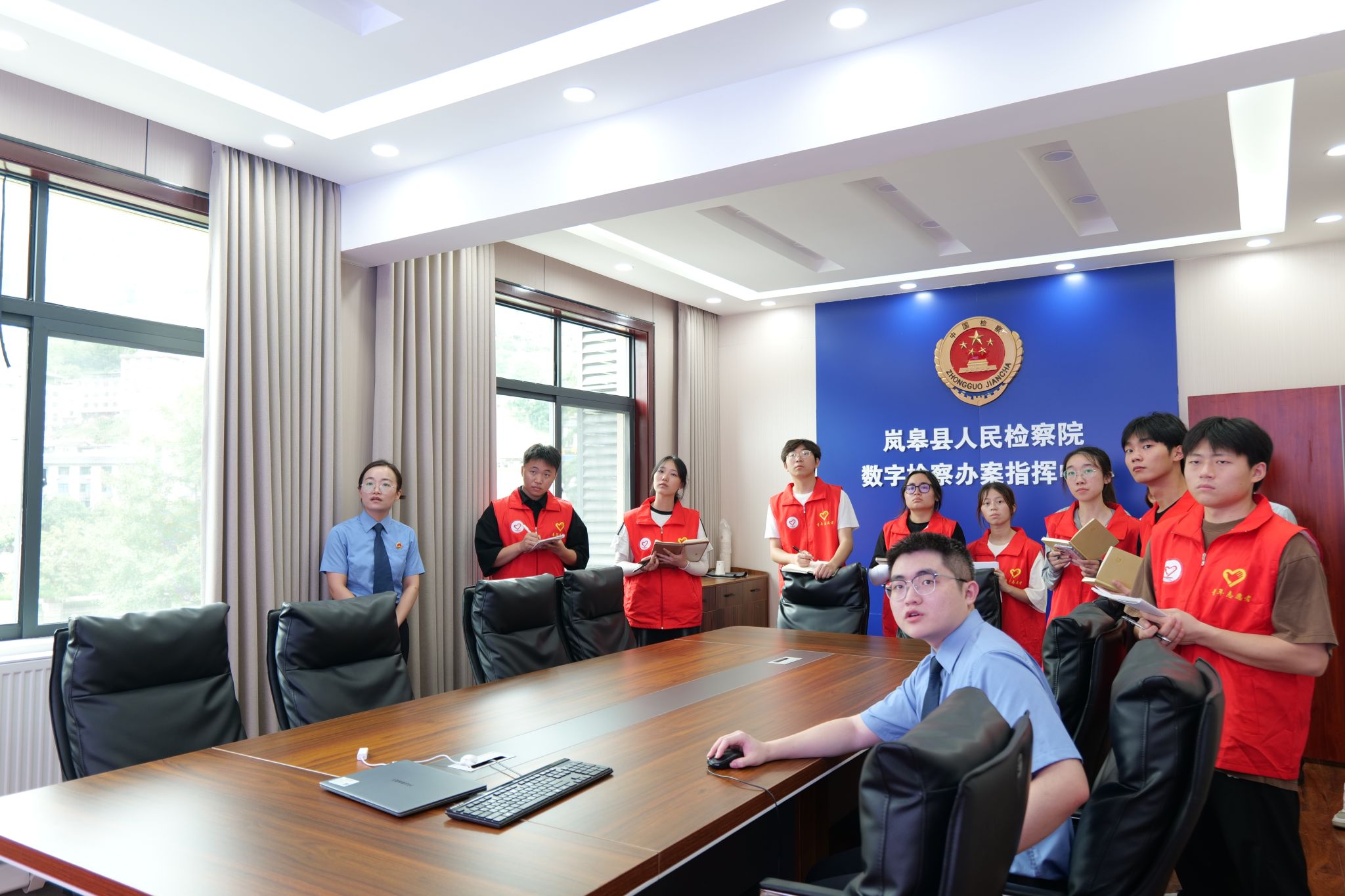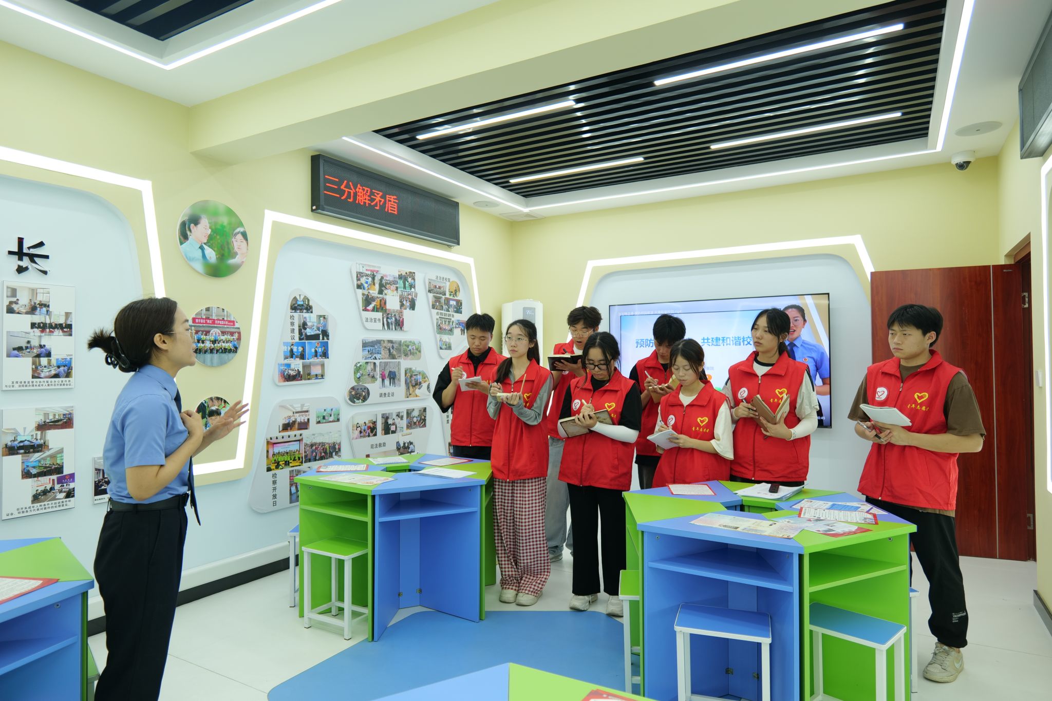 在此基础上,宣讲团深入了解了检察院独具特色的“五金”工作理念:“肩挑法治金扁担;手启公益金钥匙;足立民生金口碑;心系清廉金品质;身沐党性金光辉”。此外,成员们了解到检察院顺应数字化潮流,创设政法全媒体中心、数字检察指挥中心,依托最高检数字模型实现案件信息精准分析,并开发“掌上岚检”小程序提升办案效率,落实“数据多跑路,群众少跑腿”;同时,通过健身房、“三原书屋”等功能室传递人文关怀,帮助干警缓解压力、保持状态。对宣讲团而言,此次参访不仅深化了其对基层司法实践与法治精神融合的理解,更提供了将理论转化为行动的鲜活案例。无论是“五金”理念中公益诉讼与民生保障的双向联动,还是数字化赋能与人文关怀的双重创新,都为宣讲团在传播法治理念、创新宣讲形式、强化责任担当方面提供了可借鉴的路径,助力其更生动、具体地讲好中国法治故事。