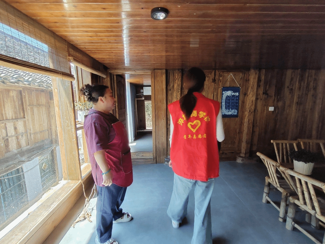 推开民宿的古朴院门,老板正忙着擦拭门廊上的侗族木雕。这座由闲置农房改造的民宿,保留了原木结构与雕花窗棂,又添置了现代卫浴与智能家居。“改造时特意保留了老火塘,客人就爱围在这儿烤火聊天;床单被套都是村民们染的侗布,好多客人说住这儿像‘住进了侗族故事里’。” 老板笑着介绍。从客源拓展到文化融合,民宿发展的每一步规划都承载着乡村振兴的希望。实践团深度剖析运营模式,为乡村文旅产业发展积累宝贵案例。
