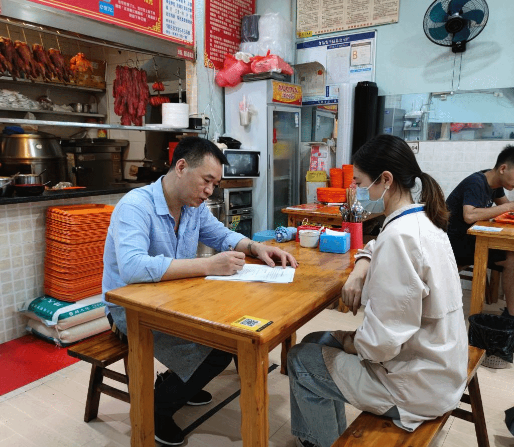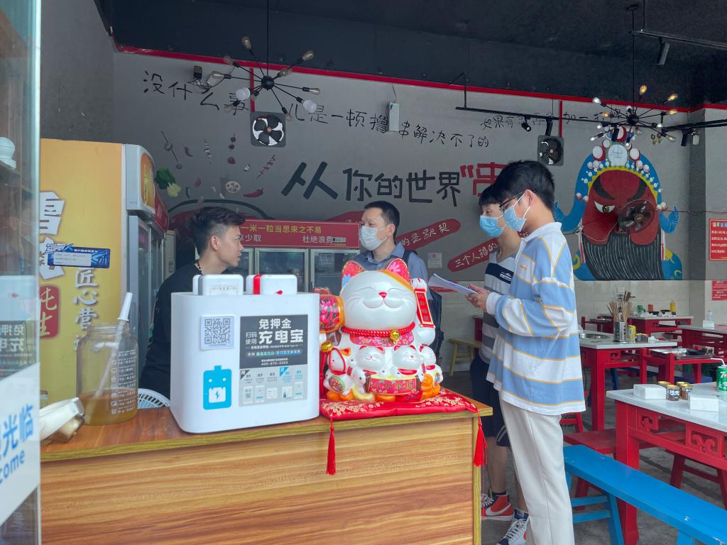 在学校正大门集中、分工之后,7位老师带领学生一同前往学校周边和缤果城商业区进行调研。师生们积极与商家进行了沟通,了解各个餐馆日常的经营状况、营业收入、经营策略、受疫情的影响程度、面临的主要困难等情况,并做好详细记录。