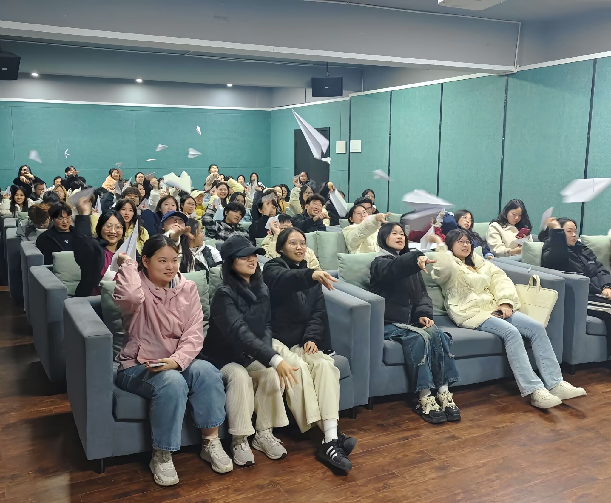 在自我成长的曲折道路上,每一次与困境的顽强斗争,都是一场深刻的自我突破。欧玲灵老师希望同学们能把这些经历内化为宝贵的人生智慧,无论未来的风浪多大,都能秉持坚定信念,勇敢拥抱未来。在此次团辅活动尾声,欧玲灵老师与同学们满怀期待地共同放飞那一只只名为“烦恼”的纸飞机,并传递着对未来职业生活的美好祈愿。在职业旅程的漫漫征途中,同学们也将如这纸飞机般勇往直前,逐梦新程。