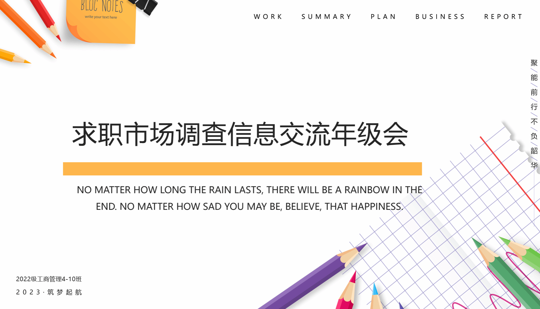 毕业生就业工作必须深入学生中,认真了解同学们的思想动态,进行情感交流,然后再有针对性的、逐人的做思想工作,才能达到事半功倍的效果。为了帮助同学们更好地了解就业形势,掌握基本的求职技巧。淬炼商学院2022级工商管理专业专升本4-10班于10月27日下午16:00在五教5201开展求职市场调查信息交流年级会。