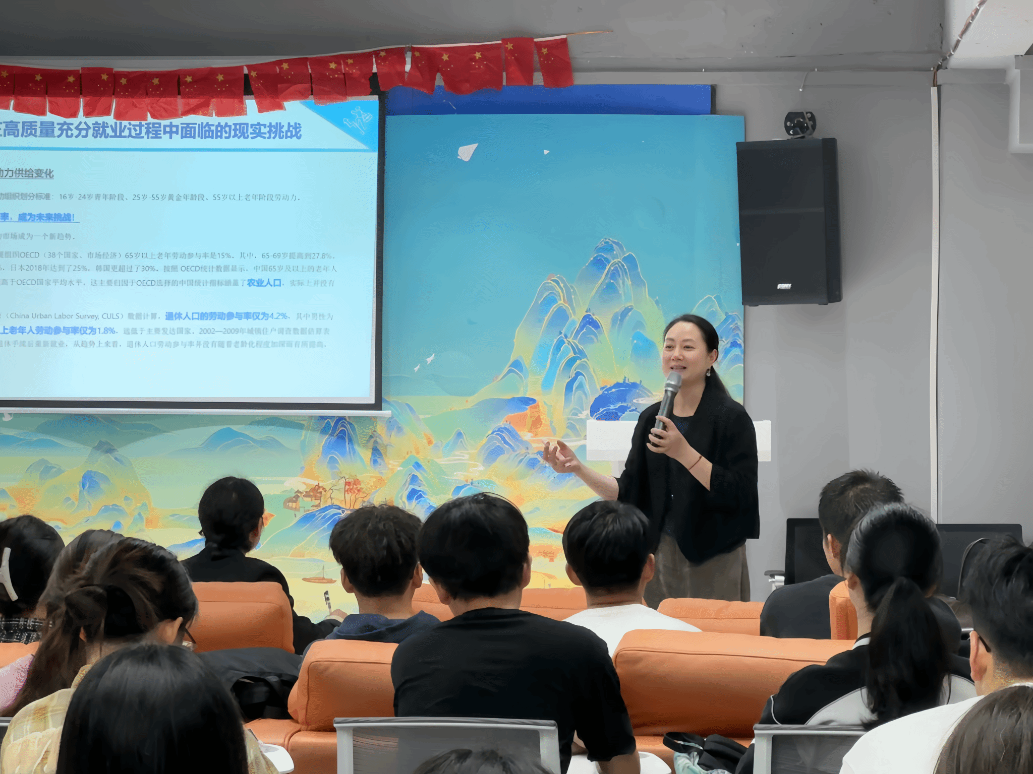 时代不断发展变迁,就业环境瞬息万变,正确认识当前就业环境与趋势至关重要。钟敏老师从大学生就业过程中会面临的竞争压力入手,深入分析当下不断变化的市场需求、自身技能与岗位要求之间的差距等现实问题,指导同学们抓住重点与时机以更好应对寻业路上的困境。告诉同学们要养成理性分析、正确判断的思维习惯,不被新时期就业的热潮所裹挟,多方位探索就业可能性。