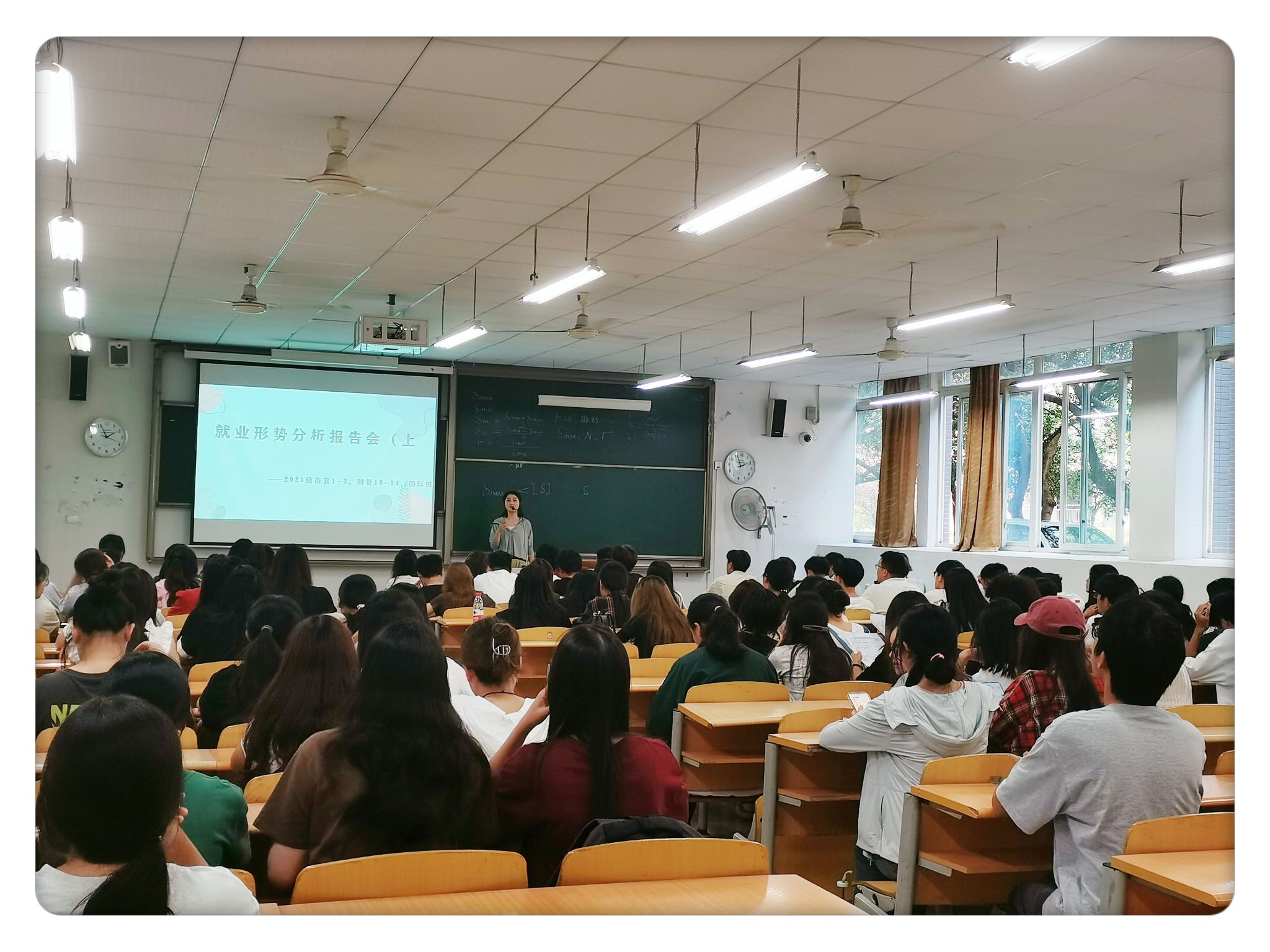 最后,通过本次就业形势分析大会,同学们树立了正确的就业观念,摆正了就业心态;也明白了就业并不仅仅局限于一份理想的工作,而是一个自我认知、发展的过程。在面对就业压力时,要积极调整心态,勇敢面对挑战,相信自己的能力与潜力。同时,陈思老师也祝愿同学们能够实现从大学到职场的华丽蜕变,展现青春的辉煌!