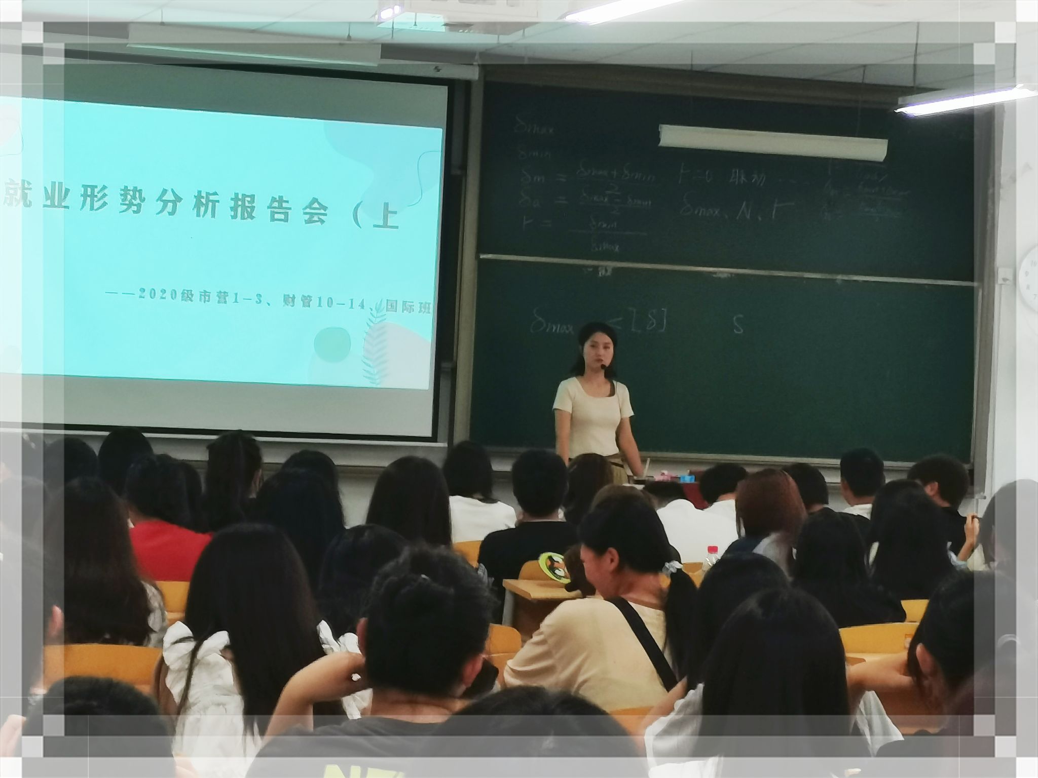 为了帮助同学们对当前的就业形势有更清晰的了解,对未来的就业目标有更明确的认知和规划。淬炼商学院2020级财务管理10-14班、市场营销1-3班、国际班于9月23日在五教5302开展了就业形势分析会。此次会议由辅导员陈思老师主持,2020级财务管理10-14班、市场营销1-3班、国际班全体同学参加。