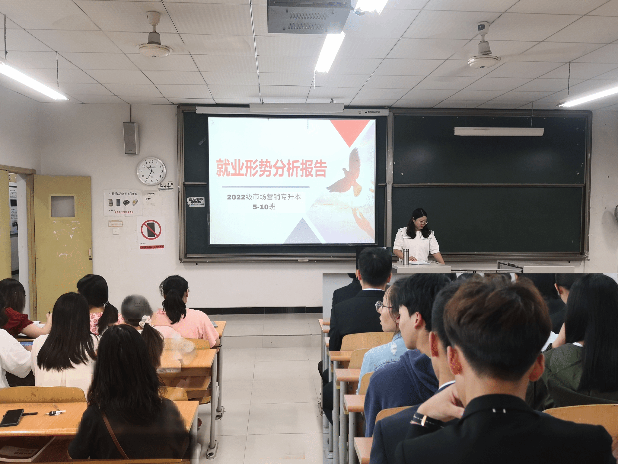 为了帮助同学们更好地了解就业形势及应对方法,进一步促进同学们的就业发展。2024年3月19日中午13:00,淬炼商学院2022级市场营销专升本5-10班于五教5202召开了就业形势分析会。本次会议由辅导员黄新燕老师主持,2022级财务管理专升本5-10班全体同学参加。